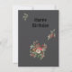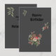 Elegant design features a bouquet of vibrant roses and branches set against a soft grey background.