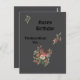 Elegant design features a bouquet of vibrant roses and branches set against a soft grey background.