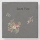 Elegant design features a bouquet of vibrant roses and branches set against a soft grey background.