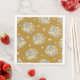 Paper Napkins with Floral pattern of pale pink, gold and blue flowers bouquets on a yellow background. Countryside, cottage style.