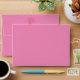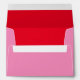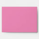 Pink envelope with red inside. Back flap features red illustration of bouquet and return address.