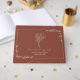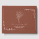 Line art inspired illustration of bouquet and floral border over terracotta background.