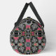 Bouquets of pink flowers flowers on a geometric duffle bag