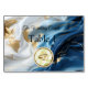 Bouquets of Arty Silky Blue-White and Gold flowers on a smoky blue repeat pattern of Blue-White and Gold marble-looking texture or background for all your event invitations, gifts or home decor.