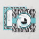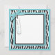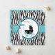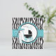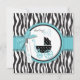 Boutique style zebra and dot print with turquoise accents and a baby carriage.