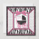 Boutique style zebra, damask, and dot print with hot pink accents and a baby carriage.