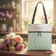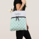 Make a statement with a tote that radiates boutique charm and personalized elegance. This custom tote bag features a sophisticated two-tone design, pairing a crisp, cool-toned porcelain top with a refreshing mint green polka dot base. The centerpiece is a delicate, sheer black bow anchored by a classic ribbon that separates the color-blocked sections. Personalized with the name "Seraphina" in the timeless script, this bag strikes the perfect balance between vintage flair and modern chic. Whether you’re heading to a bridal brunch, a weekend market, or looking for the perfect personalized gift for a style-conscious friend, this tote offers a premium look that stands out. The high-contrast black accents against the pastel palette ensure the design remains sharp and fashionable for any season. Part of the Resort-Ready 2026 Collection—pair with matching accessories for a complete look.