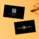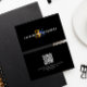 Elegant boutique business card template with QR code and chunky retro font. The black and white design is on-trend and classic. This business card design is easy to customize, simply add your own logo and business QR code.