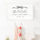 Celebrate your little girl's first Birthday with this design, featuring elegant black bow, a playful wavy border.