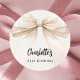 Bow beige cream birthday classic round sticker