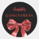 A black background. Decorated with a large red bow.  Personalise and add a name. Red handwritten style script.