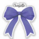 A large blue coloured bow. Personalise and add a name. Black handwritten style script. To decorate your belongings