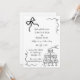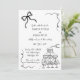 Whimsical wedding invitation featuring a hand-drawn champagne tower and a bow. Personalised with your names, and details.