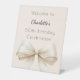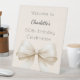 A stylish cream, beige background decorated with a large bow. Personalise and add a name and age.