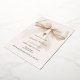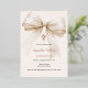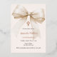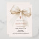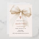 A soft beige, cream coloured background, decorated with a large bow and a cross. Personalise and add a name and details details.