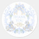 Bow Floral Crest Rustic Blue Boy Baby Shower Classic Round Sticker