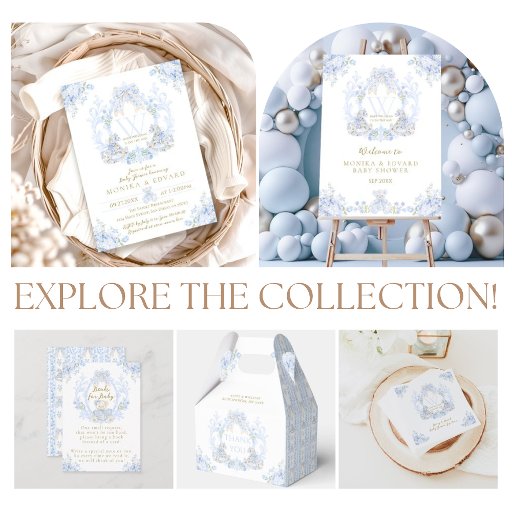 Bow Floral Crest Rustic Elegant Blue Baby Boy Shower
