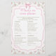 Bow Floral What's On Your Phone Bridal Game Card. Matching items available.