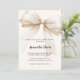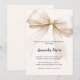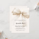 A soft ivory, cream background, decorated with a large bow. Gender neutral. Personalise and add a name and party details.