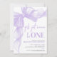 Girls Just Wanna Be ONE 1st Birthday Invitation. This adorable design features a playful watercolor bow in purple, with a ribbon frame accenting the top and left side for a sweet and stylish touch. The phrase “Girls Just Wanna Be ONE” appears at the top in a mix of fun script and classic serif fonts, setting the tone for a charming and girly celebration.