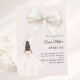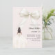 This sophisticated design features a large ivory bow adorned with delicate pearl details, paired with a graceful gown illustration. A soft blush pink colored background creates a modern, refined look that feels both luxurious and unforgettable.