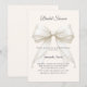 An elegant soft ivory colored background, decorated with a large bow with pearls. Personalize and add a name and party details.
