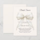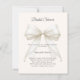 An elegant soft ivory colored background, decorated with a large bow with pearls. Personalize and add a name and party details.