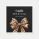 A black background. Decorated with a large bow with leopard print. Personalise and add a name, age, and a date. White handwritten style script.
