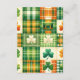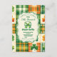 Design: Features a whimsical watercolor shamrock and gold horseshoe illustration, complemented by a green-and-gold colour scheme.