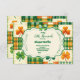 Design: Features a whimsical watercolor shamrock and gold horseshoe illustration, complemented by a green-and-gold colour scheme.