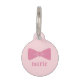 Adorn your beloved pet with the essence of elegance and charm with this Bow Pet ID Tag. Embracing a delicate pinkish hue, this tag is graced with a graceful bow illustration that radiates a subtle yet unmistakable sophistication. The addition of your pet’s name in a soft, complementary font completes this design that’s perfect for the pet who carries themselves with a touch of class and a whisper of playfulness. Lightweight and stylish, this tag ensures that your furry friend stands out in the neighbourhood with their impeccable taste.