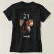 A black, dark coloured t-shirt Decorated with a bow shaped photo frame. Personalise and add a name and age. White handwritten style script.