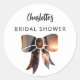 The sticker is made on wonderful paper and had no problem sticking to the bag that I purchased to put it on. I wanted to find a design that would be cute for the bride and groom and this one fit the bill as it has cute "bees" buzzing around and the wedding was taking place in a town called "Bee Cave". The packaging was great and protected the stickers. The website is easy to navigate and there are so many color choices. I had no problem finding a color that the bride was using on everything else selected. The design was adorable and there were many to choose from. You can make the figure as larger or smaller and you can place the photo and writting whereever you want to in the sticker. The printing is fabulous..better than expected.