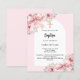 Bow pink florals arch girl baptism invitation