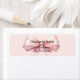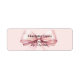 A soft blush pink background decorated with a large bow. Personalise and add your name and address. Black letters.