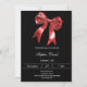 A black background, decorated with a large red bow. Personalise and add a name and party details. White text.