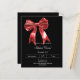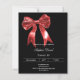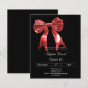 A black background, decorated with a large red bow. Personalise and add a name and party details. White text.