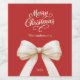 A red background and cream, beige coloured text and bow. Merry Christmas is written with an elegant hand-lettered style script. Personalise and add your family name and year.