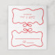 Add a charming touch to your table setting with these personalised couples bridal shower place cards, perfect for a whimsical celebration. Featuring a hand-drawn wavy frame with a cute bow in vibrant red, these cards capture the fun and romance of your event. The playful, doodle-inspired design and handwritten-style font create a casual yet stylish feel, perfect for any couple’s special day. Personalise the back of the card with the couple's names to make it even more unique. Whether you're hosting an Italian "That's Amore" themed shower or simply looking for something creative, these place cards are the perfect detail to guide guests to their seats in style. Ideal for adding a personal, scribble-inspired touch to your celebration!