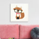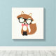 Beautiful canvas design features a cute illustration of a sweet little brown fox wearing an oversized pair of reading glasses and a pink bow tie, and can be personalised with a name or a custom message and be used as the perfect finishing touch for a baby nursery, children's bedroom, kids playroom, classroom, dorm room, etc.