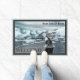 A digital rendering of a Bowhead Whale (Balaena mysticetus) surfacing off a rocky, snow-covered coast. Abundant ice from a nearby glacier floats in the water. Text reading, "WELCOME" also appears. Add your own additional text.
