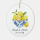 Celebrate your first holiday season as newlyweds with this elegant Christmas ornament featuring a bowl of lemons with blue chinoiserie. A timeless keepsake to personalise with your names and wedding date, perfect for hanging on your tree or gifting to another newly married couple.