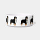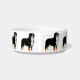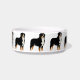 This is a heavy, durable bowl decorated with Tibbies of many colors, the perfect size for hungry/thirsty Tibs. The design is interesting and printing clear.