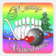 Season's Greetings with this Merry Christmas design for bowlers - with bowling ball, bowling pins, a Christmas tree and lots of sparkles.
