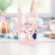 Create a personalised gift for bowlers when you add their name to this drinking glass. Their name appears in blue script lettering above an illustration of a bowling ball and bowling pins.