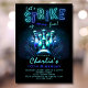 Bowling Birthday Invitation Boys Blue Neon Bowling