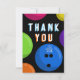 Black and neon thank you card designed for kids' bowling birthday parties but can be used for other bowling themed events (e.g. bowling corporate events, bowling fundraisers, family bowling reunions).