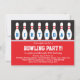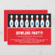 Bowling party invitation (4.5 x 6.25") with a row of bowling pins and and the word "Birthday" spelled on the pins. Customisable invite text. For custom requests and help with customising please use the store contact link.