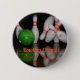 A button featuring a photo of bowling pins and the words Bowling Champ! Customer can customise wording at check out.