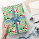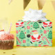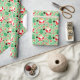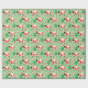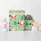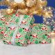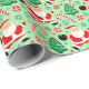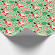 Creative bowling themed holiday gift wrap featuring Santa Claus bowler surrounded by Christmas candy and cookies.